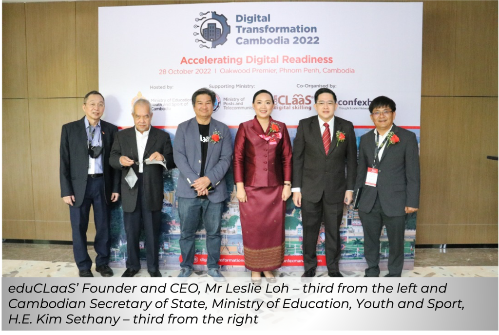 The Digital Transformation Cambodia 2022 Summit was held in Phnom Phenh with the overarching theme ‘Accelerating Digital Readiness’ The summit was hosted by the Cambodia Ministry of Education, Youth and Sport, supported by the Cambodia Ministry of Posts and Telecommunications, with Confexhub and eduCLaaS as the co-organisers.