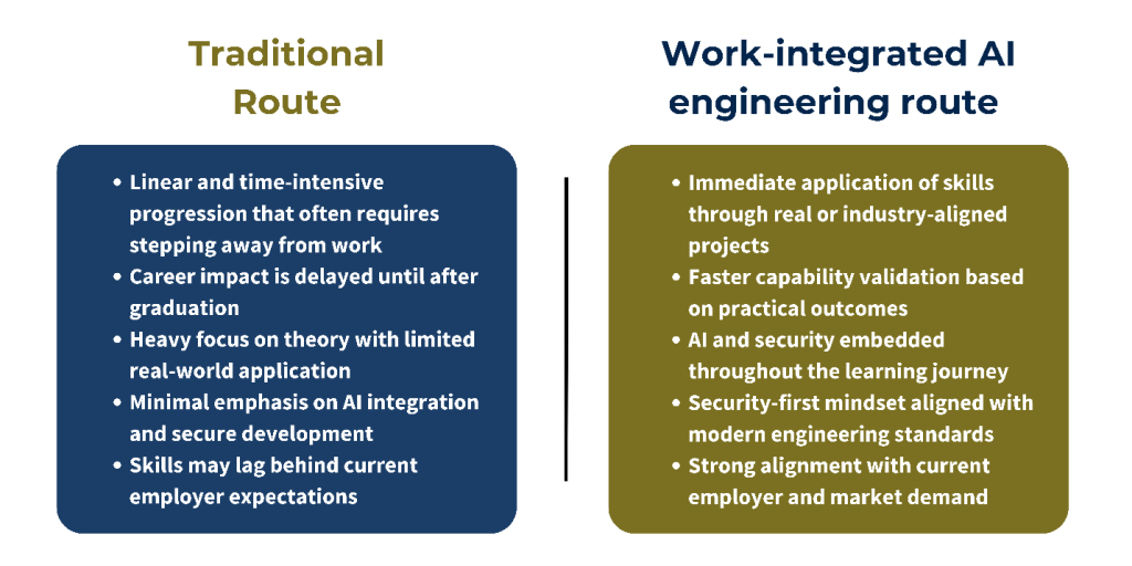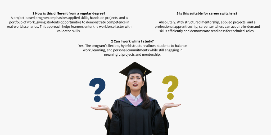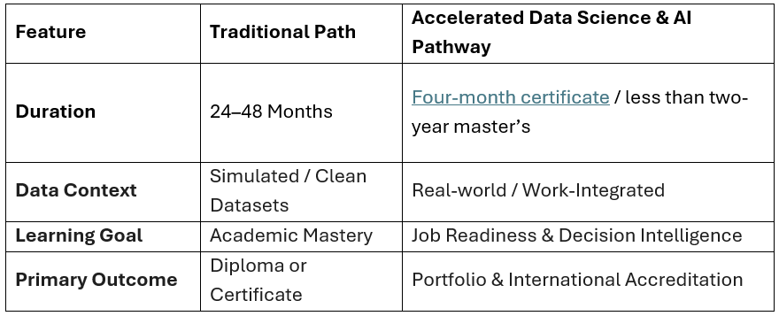 But here’s the challenge: traditional university degrees take 3-4 years to complete, and by the time students graduate, the tools and techniques they learned are often outdated. Meanwhile, the job market needs talent now.