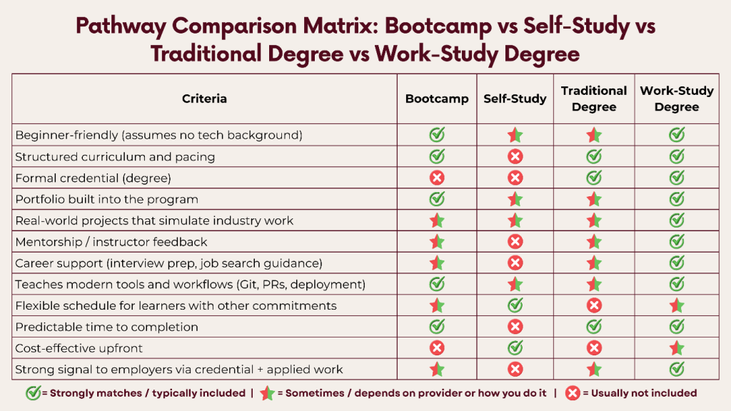 - Outcome: Grow into higher-level job roles with deeper technical skills, strong problem-solving ability, and portfolio experience.