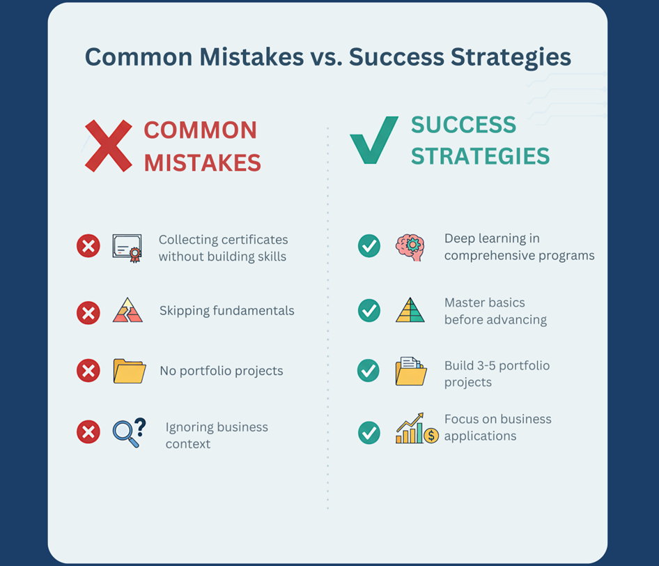 Programs must teach current, market-relevant skills using tools and techniques that employers actually use. This includes Python, machine learning frameworks, cloud platforms, and visualization tools that are standard across global enterprises.