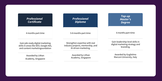 You don’t have to choose between creativity and technology, or between a recognised degree and real-world skills. With the right AI-integrated pathway, you can develop both at the same time and stay relevant as marketing continues to evolve.