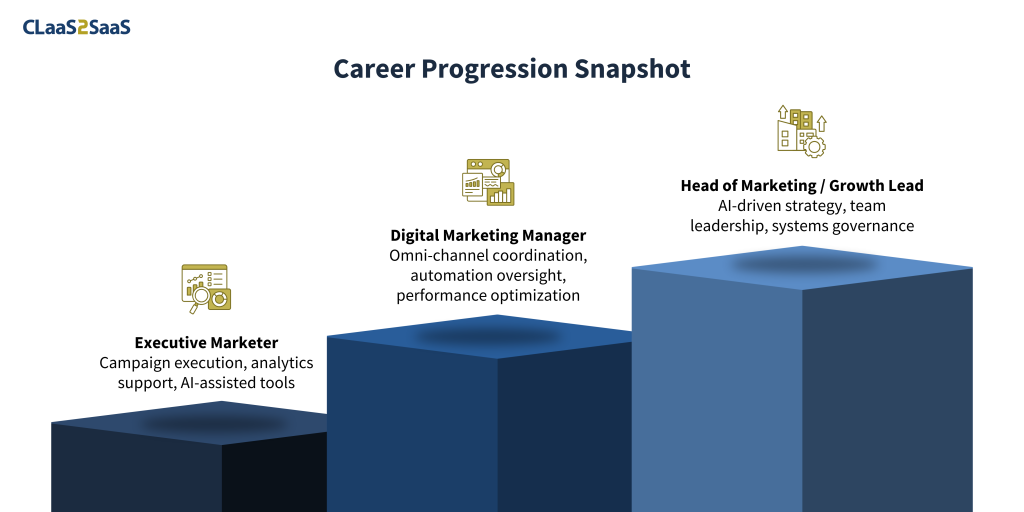 AI has changed the expectations placed on marketers at every level. Entry-level roles now require tool proficiency. Mid-level roles demand automation and analytics skills. Leadership roles require strategic oversight of AI-driven systems.