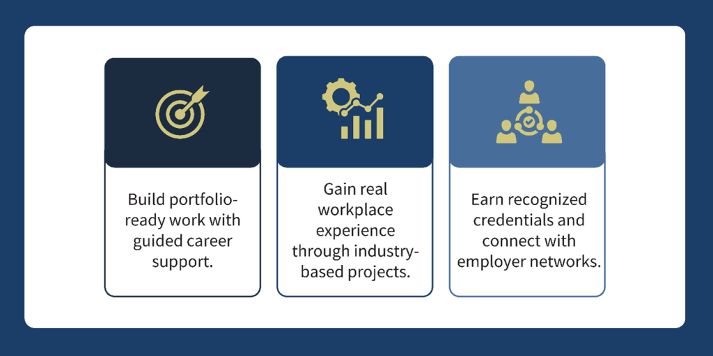 AI-integrated programs are designed around employability and real-world relevance. Through a work-study approach, students don’t just learn theory and get an undergraduate degree—they gain hands-on experience while applying skills in practical, professional settings.