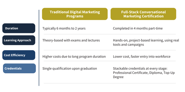 Businesses are not waiting for education to catch up. They need marketers who can adapt quickly and deliver measurable results.
