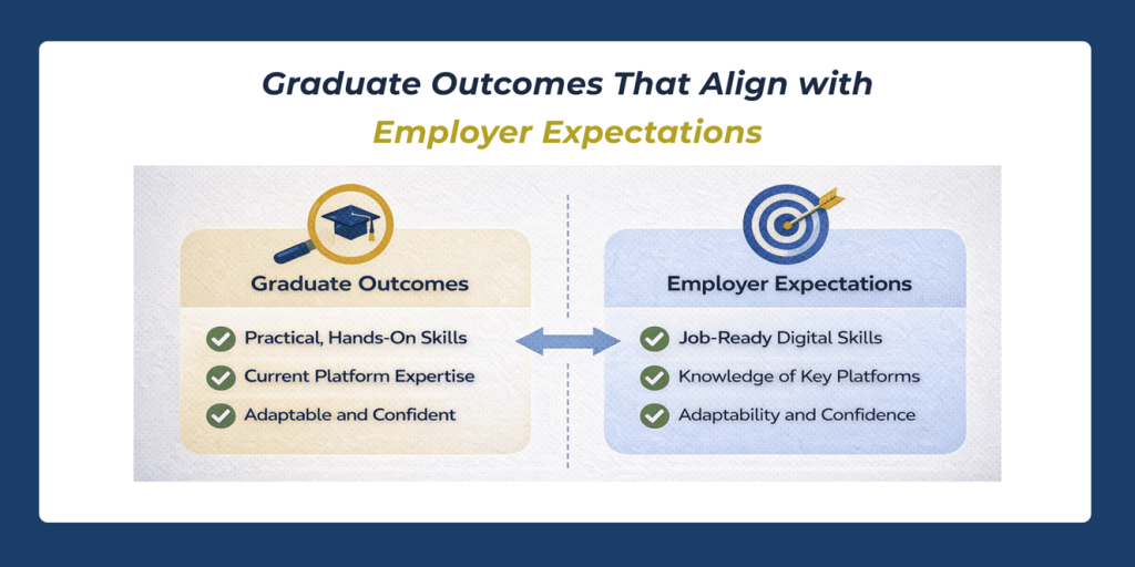 The result is a demand for marketers who can think holistically and execute efficiently. Employers are no longer hiring single-skill specialists. They are hiring adaptable professionals who understand systems, tools, and outcomes. This shift means that undergraduate education must now prepare students not just for their first job, but for how marketing roles will evolve over the next decade.