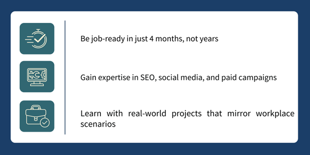 Stop waiting for traditional degrees to catch up with the digital world. Take charge of your future and become a job-ready digital marketer today.