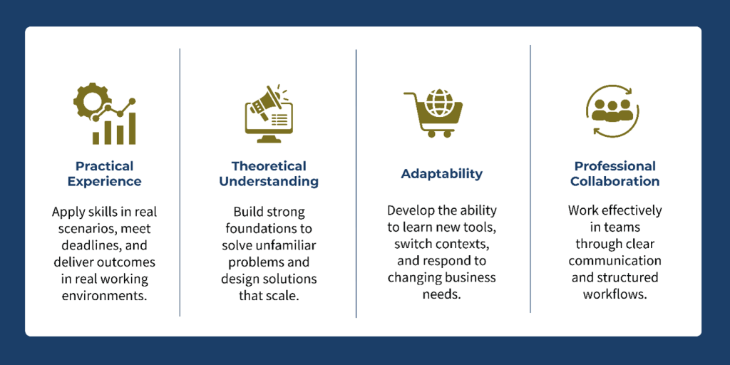 A structured degree with applied learning provides clarity, credibility, and faster entry into professional roles.
