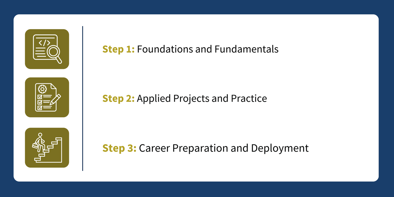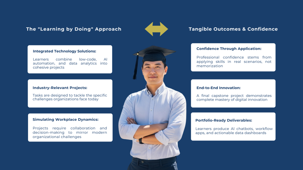 This builds not just knowledge, but confidence and credibility — the qualities employers are increasingly prioritizing in hiring decisions. From day one, learners are guided to: