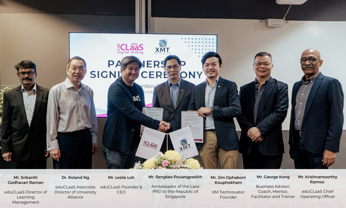 Singapore, November 9, 2023 – eduCLaaS proudly announces its groundbreaking partnership with XM Technovator (XMT), a pioneering organisation in Laos, to introduce transformative Work Study Programmes and Internationally Accredited Degree Programmes focusing on digital technology. This landmark collaboration establishes XMT as the first institution in Laos to forge such a significant partnership.