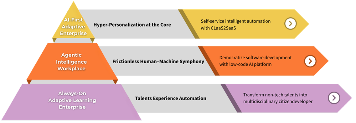 The transformation combines software and training into a single operating system for the enterprise. Agentic AI platforms embed intelligence directly into workflows, while adaptive learning equips the workforce to design, improve, and govern these systems. Together, they create a closed-loop model where insight drives action and action generates new intelligence.
