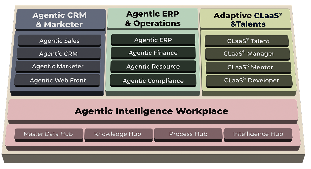 Agentic Enterprise CLaaS2SaaS provides a software-based intelligence layer that unifies enterprise data, workflows, knowledge, and AI agents into a governed environment for intelligent operations.