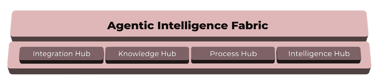 The Enterprise Intelligence Fabric (EIF) acts as the intelligent core of the AI-First enterprise, unifying data, knowledge, workflows, and AI reasoning into one coordinated operating environment. It enables AI agents to interpret enterprise signals, coordinate decisions, and automate actions safely across systems.